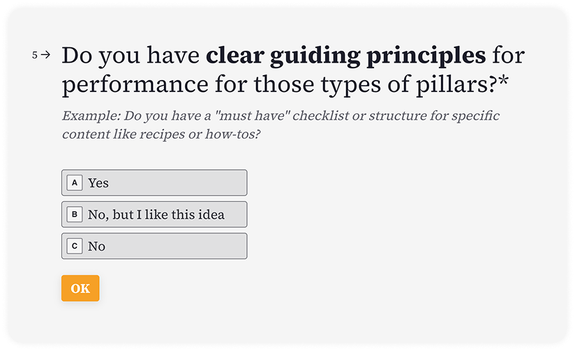 We offer a complete program to guide you through the survey, synthesize findings with Impact Mapping, build a prioritized Action Framework to launch from, and a storytelling driven readout to establish enthusiasm and alignment on your team.